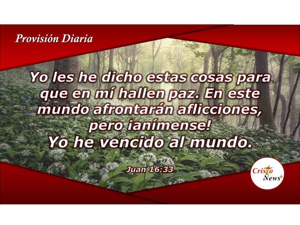 Yo les he dicho estas cosas para que en mí hallen paz. En este mundo afrontarán aflicciones, pero ¡anímense! Yo he vencido al mundo.