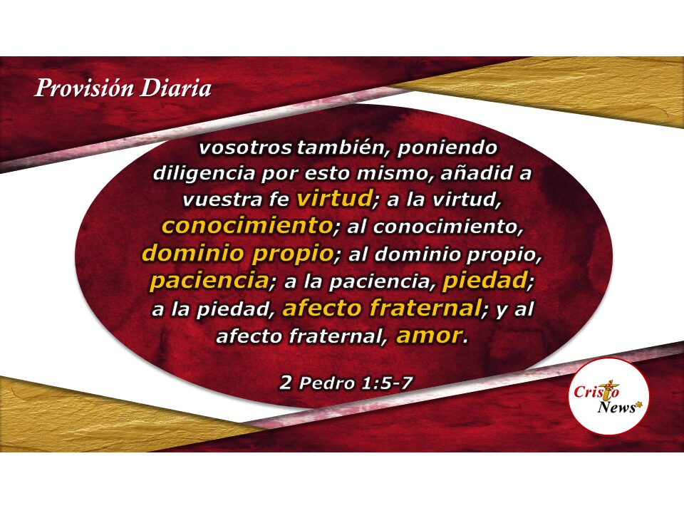 Añadid a vuestra fe, virtud: Comenzamos a caminar con el Señor con fe, pero la fe prosigue en virtud, conocimiento, dominio propio, paciencia, piedad, afecto fraternal, y amor – siendo el amor la piedra principal de la obra de Dios en nosotros.