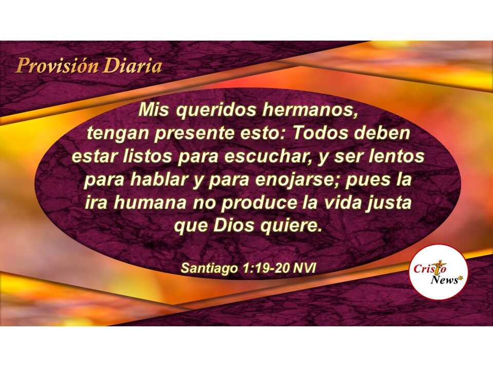 19 Mis queridos hermanos, tengan presente esto: Todos deben estar listos para escuchar, y ser lentos para hablar y para enojarse;