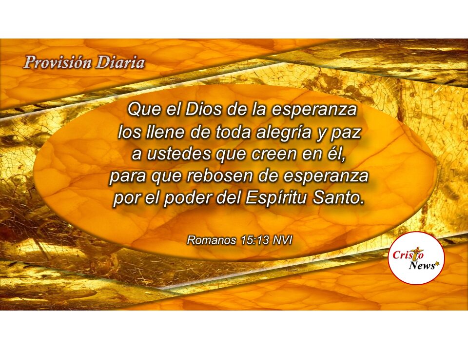 Que el Dios de la esperanza los llene de toda alegría y paz a ustedes que creen en él, para que rebosen de esperanza por el poder del Espíritu Santo.