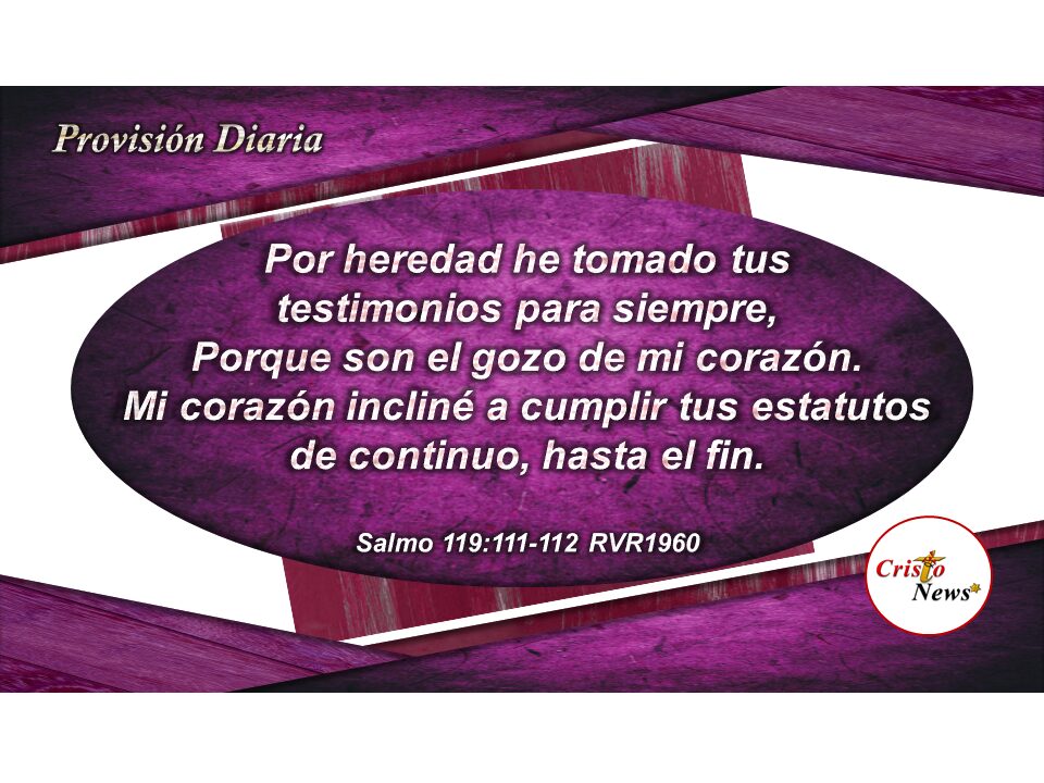El salmista reitera en estos versos su compromiso con LA PALABRA de Dios. Primero dice que ha tomado como herencia sus testimonios porque son el gozo de su corazón. En la medida que conocemos más la obra de Dios por medio de Su Palabra eso llenará de gozo nuestro corazón. El versículo 112 nos reitera la actutud del salmista, “inclinar su corazón para cumplir sus estatutos por siempre hasta el fin”, debemos doblegar nuestro corazón perverso, engañoso, perezoso, debemos de hacer el ejercicio de volcarlo hacia la Palabra de Dios, no temporalmente, sino para siempre y hasta el fin.