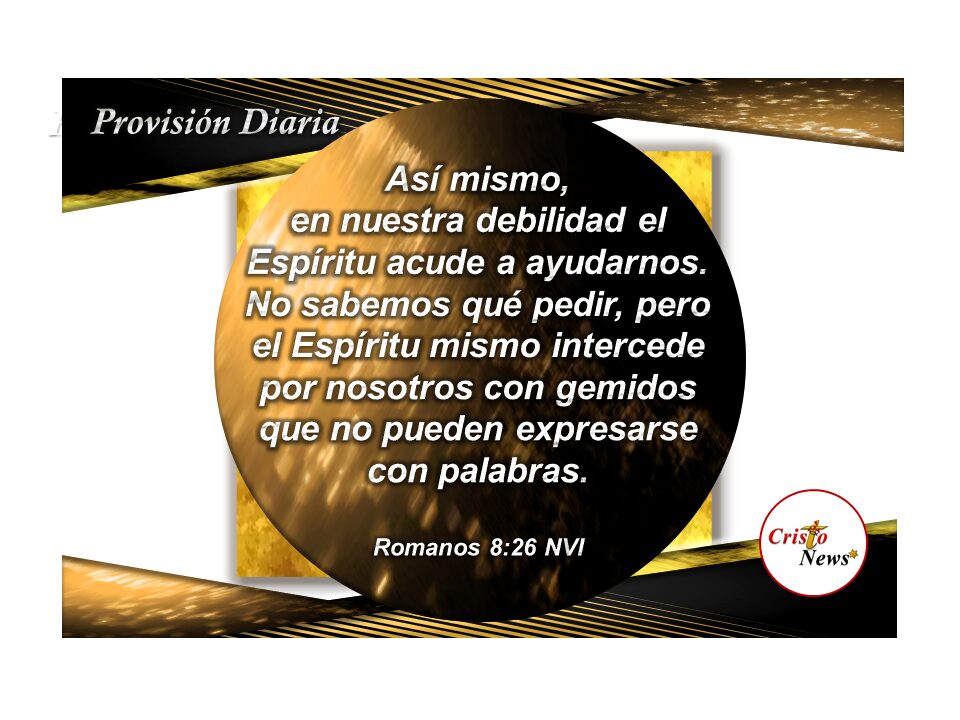 Y de igual manera el Espíritu nos ayuda en nuestra debilidad: Cuando somos débiles, y no sabemos exactamente lo que hemos de orar, Dios mismo (por medio del Espíritu Santo) nos ayuda haciendo intercesión por nosotros.
