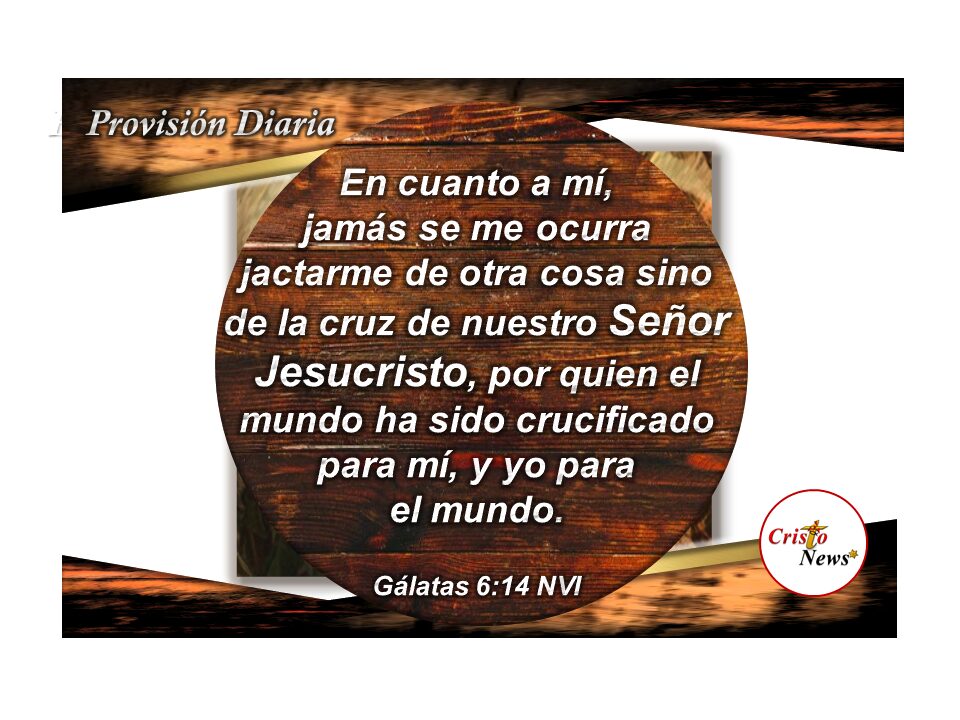 Este verso en la versión de la Biblia versión Traducción La Pasión (TPT) dice de la siguiente manera: Que mi única jactancia se encuentre en la cruz de nuestro Señor Jesucristo. En él he sido crucificado a este reino natural; y el reino natural está muerto para mí y ya no domina mi vida (Gálatas 6:14 TPT). Acá pablo hace referencia a la nueva identidad que adquiero al aceptar a Cristo Jesús como Salvador y redentor de mi vida al ser apartados del mundo en santidad.
