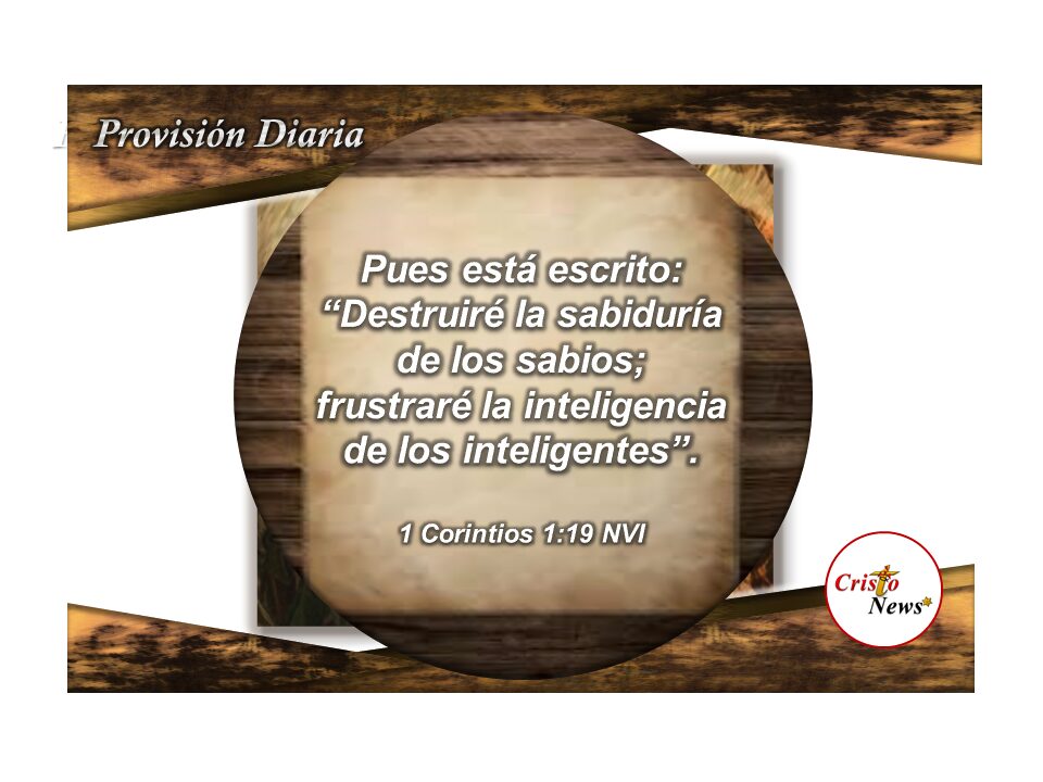 Este verso en la versión de la Biblia versión Traducción La Pasión (TPT) dice : «Porque está escrito: Desmantelaré la sabiduría de los sabios y anularé la inteligencia de los eruditos.» (1 Corintios 1:19 TPT)