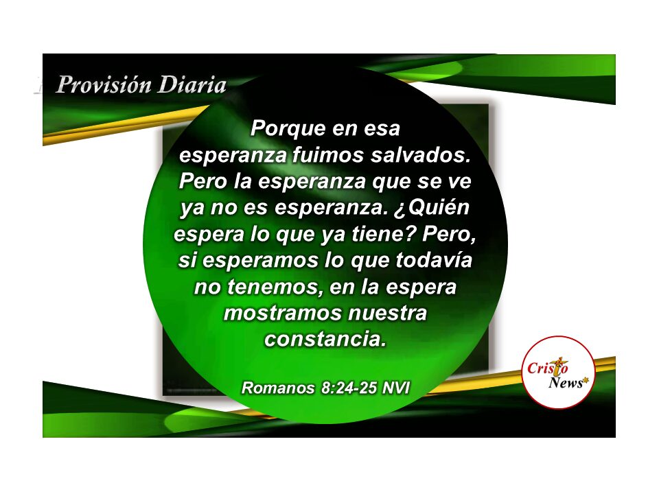 En la versión Reina Valera 1960, este verso dice: «24 Porque en esperanza fuimos salvos; pero la esperanza que se ve, no es esperanza; porque lo que alguno ve, ¿a qué esperarlo? 25 Pero si esperamos lo que no vemos, con paciencia lo aguardamos..» (Romanos 8:24-25 RVR1960)