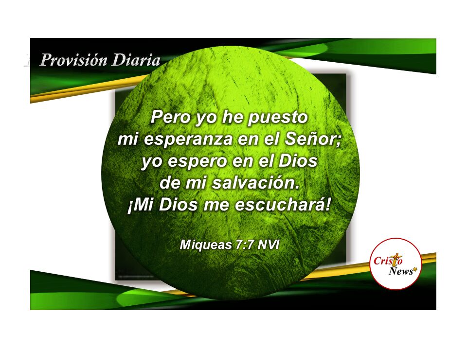 En la versión Reina Valera 1960, este verso dice: Mas yo a Jehová miraré, esperaré al Dios de mi salvación; el Dios mío me oirá. (Miqueas 7:7 RVR1960)