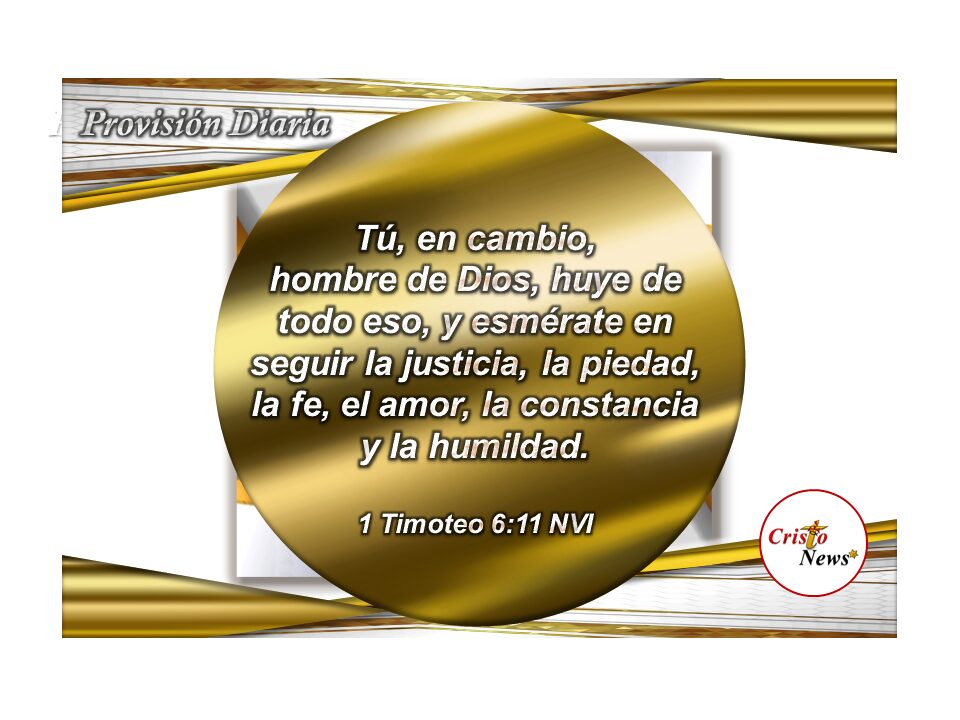 Tú, en cambio, hombre de Dios, huye de todo eso, y esmérate en seguir la justicia, la piedad, la fe, el amor, la constancia y la humildad.