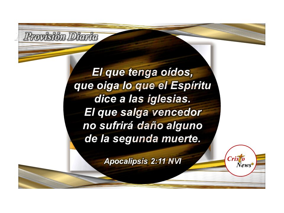 Este verso en la versión de la Biblia versión Traducción La Pasión (TPT) dice: El que tenga el corazón abierto que escuche con atención lo que el Espíritu está diciendo actualmente a todas las iglesias. El que conquista no será dañado por la segunda muerte. (Apocalipsis 2:11 TPT)