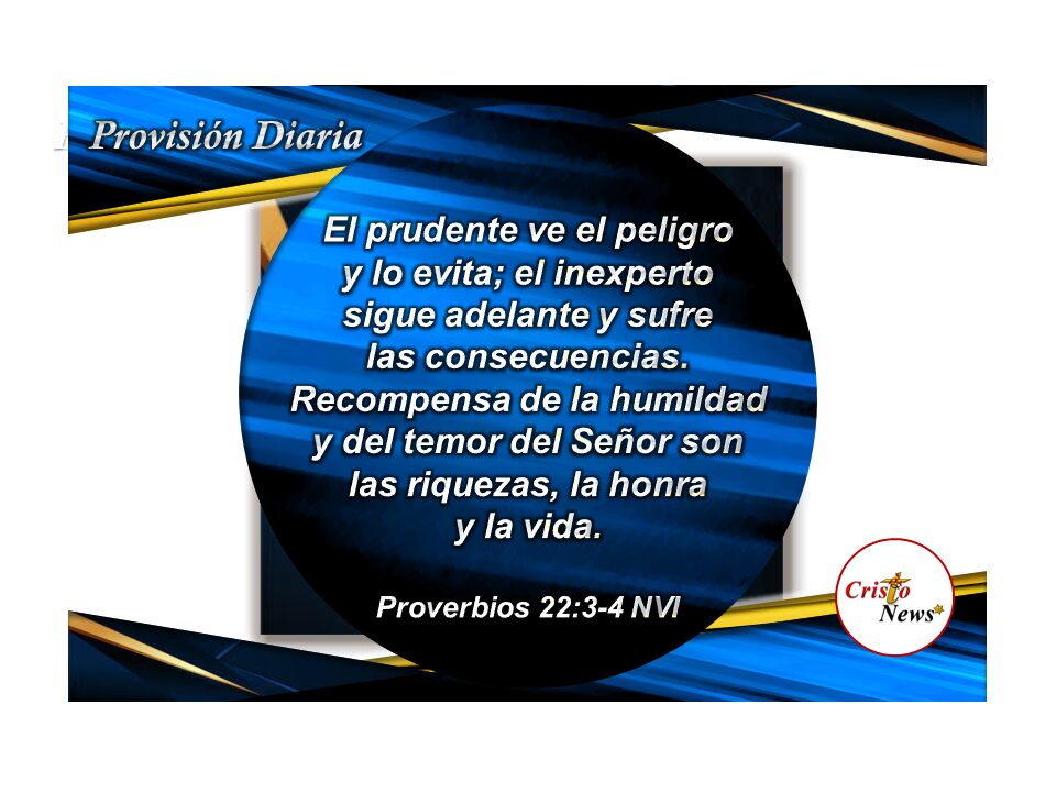 Esta Palabra en la versión Traducción La Pasión (TPT) dice: Una persona prudente con perspicacia prevé la llegada del peligro y se prepara para ello. Pero los insensatos se precipitan a ciegas y sufre las consecuencias. Poner tu vida en tierna entrega ante el Señor traerá vida, prosperidad y honor como recompensa. (Proverbios 22:3-4 TPT)