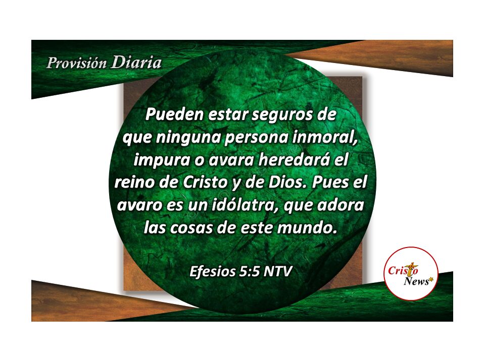 Pueden estar seguros de que ninguna persona inmoral, impura o avara heredará el reino de Cristo y de Dios. Pues el avaro es un idólatra, que adora las cosas de este mundo.