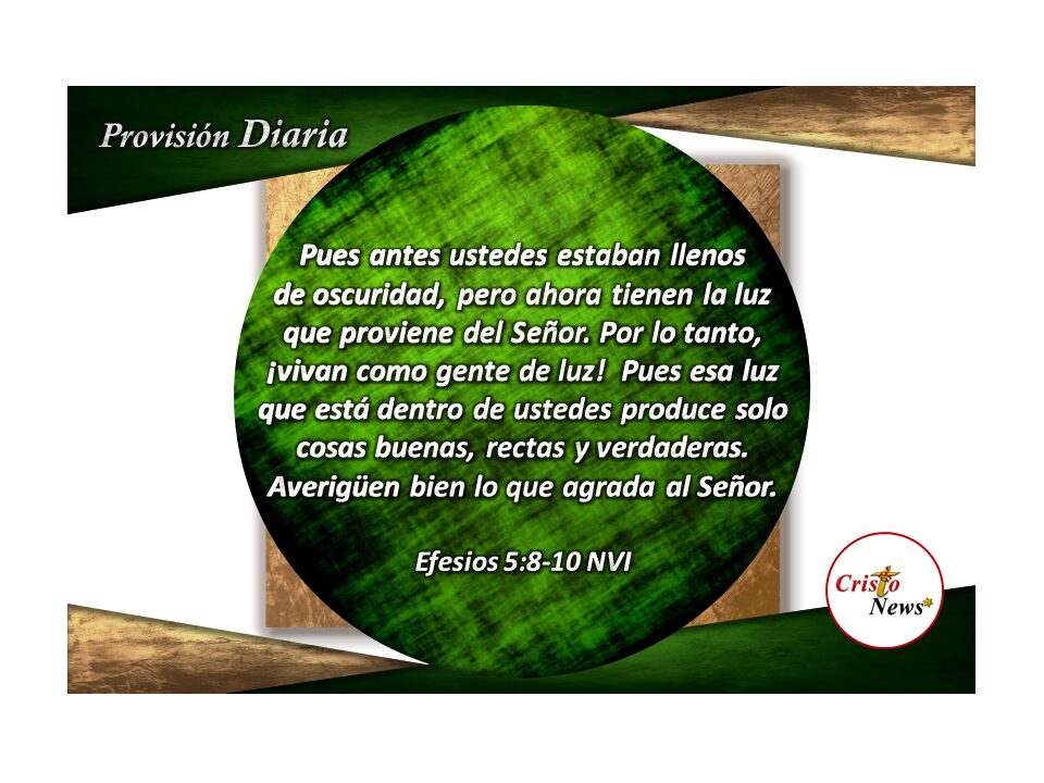 8 Porque ustedes antes eran oscuridad, pero ahora son luz en el Señor. Vivan como hijos de luz 9 (el fruto de la luz consiste en toda bondad, justicia y verdad) 10 y comprueben lo que agrada al Señor.