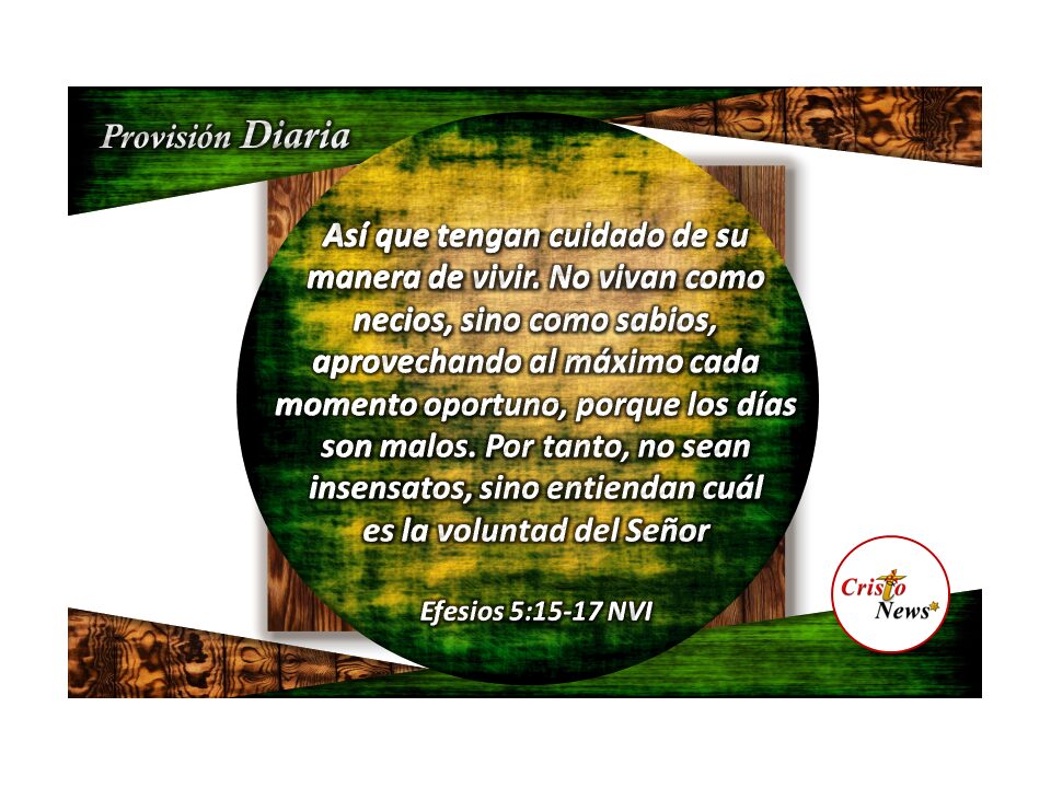 15 Así que tengan cuidado de su manera de vivir. No vivan como necios, sino como sabios, 16 aprovechando al máximo cada momento oportuno, porque los días son malos. 17 Por tanto, no sean insensatos, sino entiendan cuál es la voluntad del Señor.