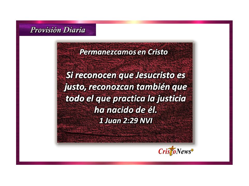 En la versión Traducción La Pasión (TPT) dice de la siguiente manera: 29 Si sabéis que es justo, podéis estar seguros de que todo el que vive en la justicia ha sido engendrado divinamente por él. (1 Juan 2:29 TPT)